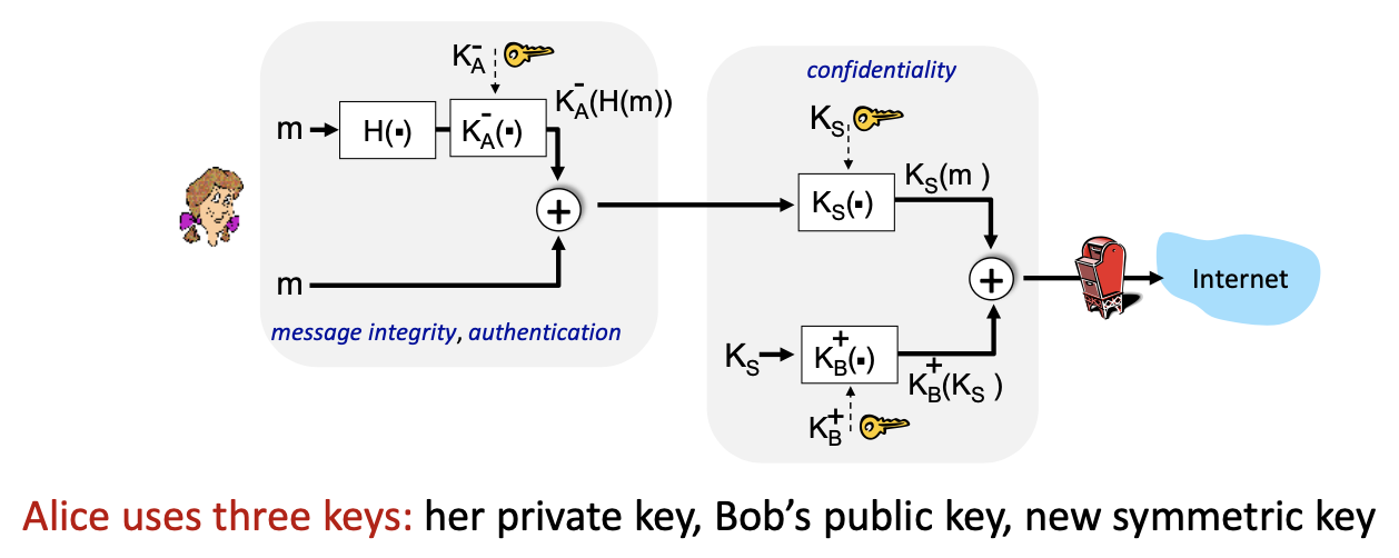 - message integrity: the sender and the receiver want to ensure that message is not altered, in transit or afterwards, without detection.