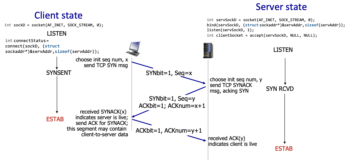 Before exchanging data, the sender and the receiver handshake: they agree to establish a connection and agree on the connection parameters (for example the starting sequence numbers).