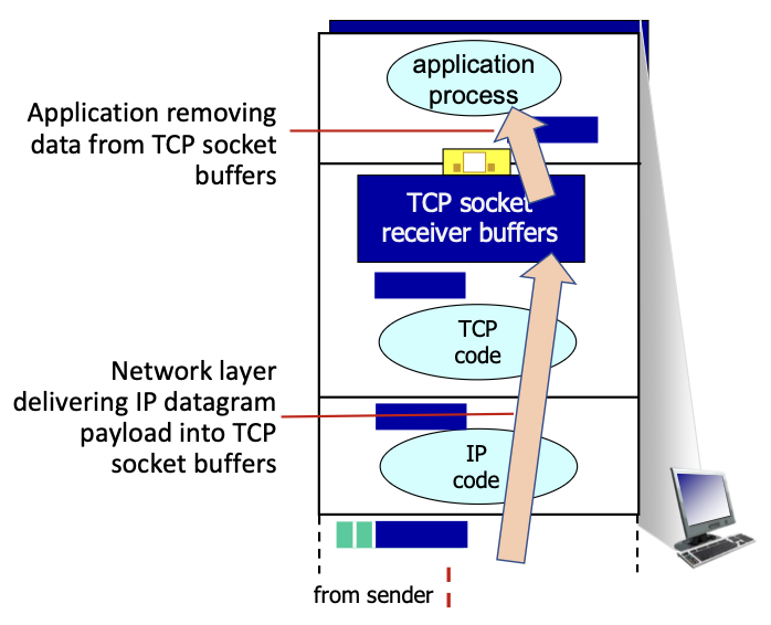 The sender limits the amount of unACKed (âin flightâ) data to the received rwnd, this way we guarantee that the buffer will not overflow.